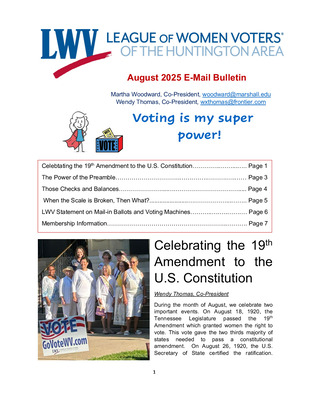 League of Women Voters of the Huntington Area E-mail Bulletin, May, 2024